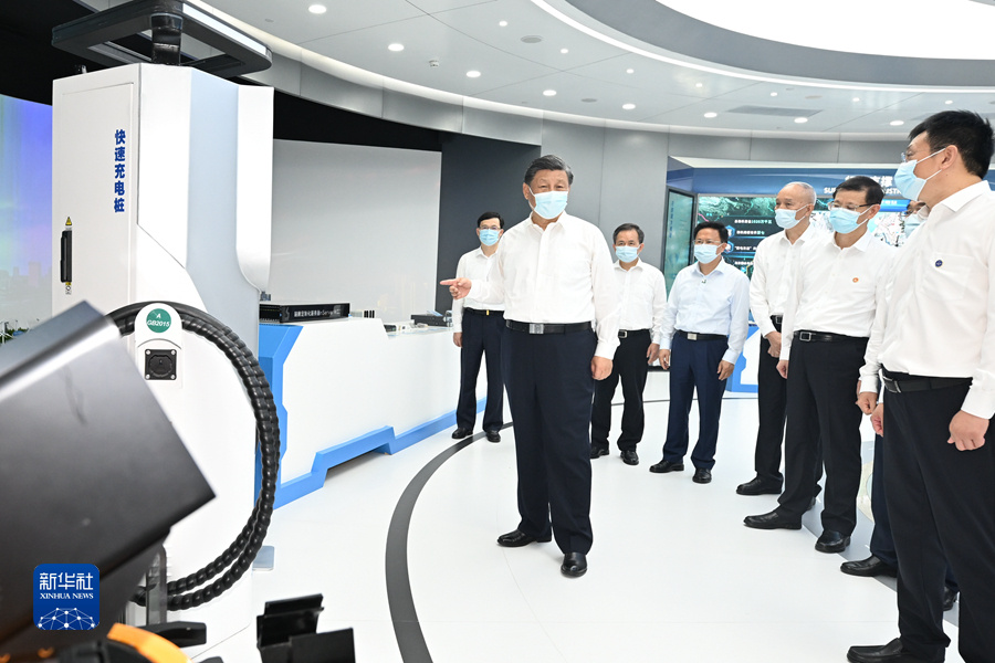 7月5日至7日,中共中央总书记、国家主席、中央军委主席习近平在江苏考察。这是6日下午,习近平在南京市考察南瑞集团有限公司。新华社记者 谢环驰 摄