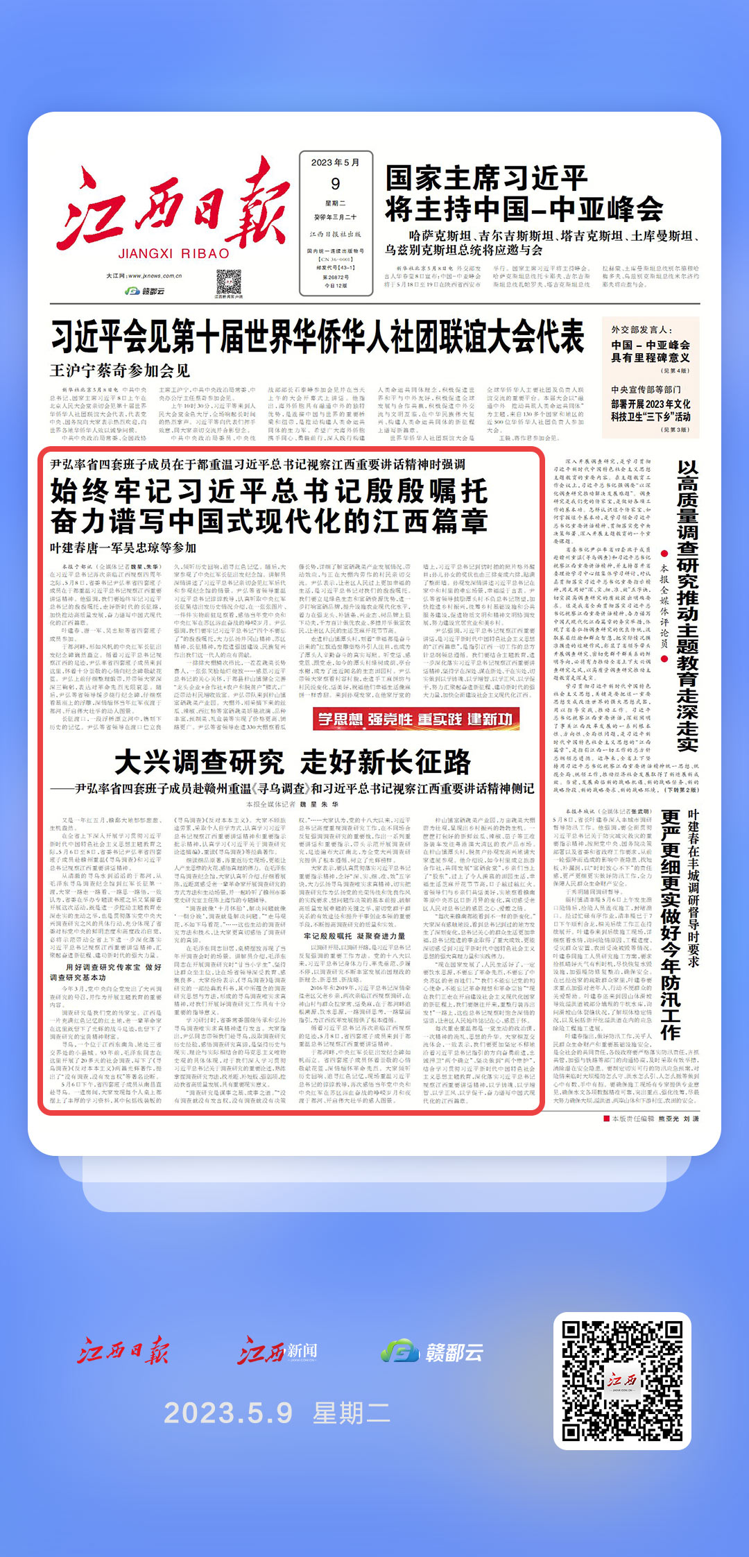 在全省上下深入开展学习贯彻习近平新时代中国特色社会主义思想主题教育之际,5月6日至8日,省委书记尹弘率省四套班子成员赴赣州重温《寻乌调查》和习近平总书记视察江西重要讲话精神。
