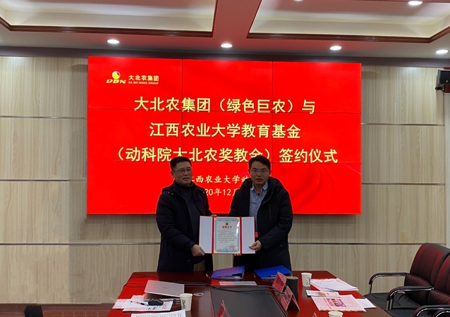 12月16日,大北农——大佑吉集团常务副总裁、绿色巨农董事长谈松林等一行专程来访欧冠,与教育基金会举行“动物科学技术学院大北农奖教金”签约仪式。校党委副书记、校教育基金会理事长郭新春出席签约仪式。绿色巨农江西区总经理王凯元、人力资源部经理谈慧敏和欧冠教育基金会主任朱小玉、动科院院长胡国良分别代表双方签约。