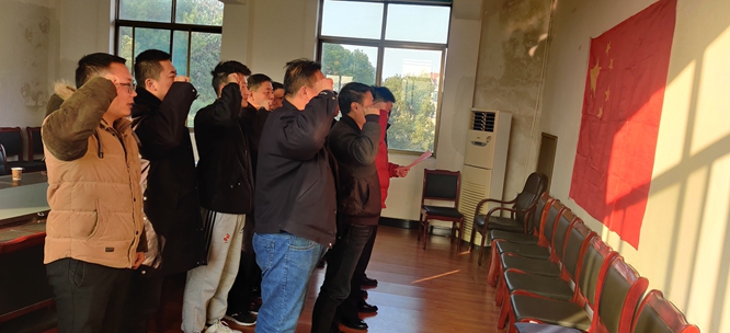 宣誓仪式上,大家整齐列队,面向国旗,严肃认真,庄重宣誓。宣誓活动中,党支部副书记郭安平组织大家学习了人民日报评论员文章《深入学习宣传习近平法治思想,大力弘扬宪法精神》。