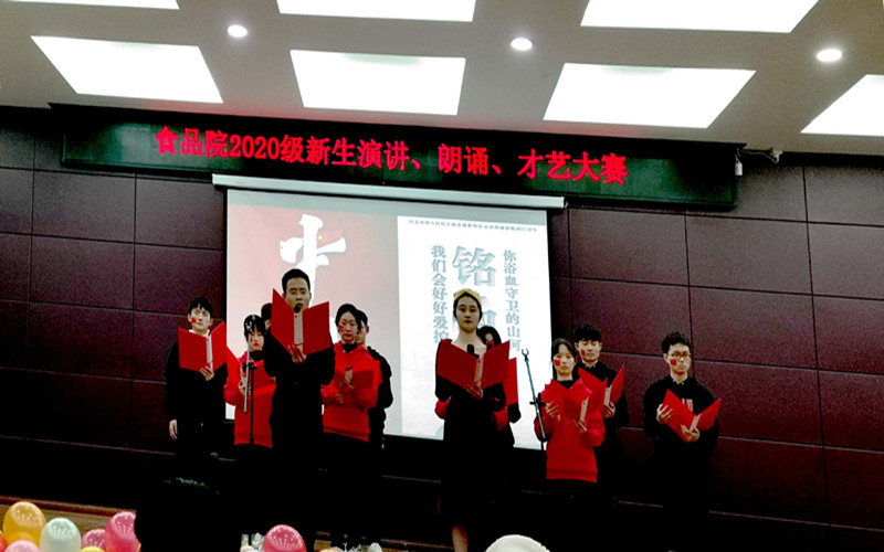 为进一步激发广大学生的爱国热情,引导青年学生勇担使命、不懈奋斗。12月1日晚,食品学院在大学生活动中心501举办了2020级新生“我和我的祖国”主题演讲、朗诵、才艺大赛,300余名师生观看了比赛。