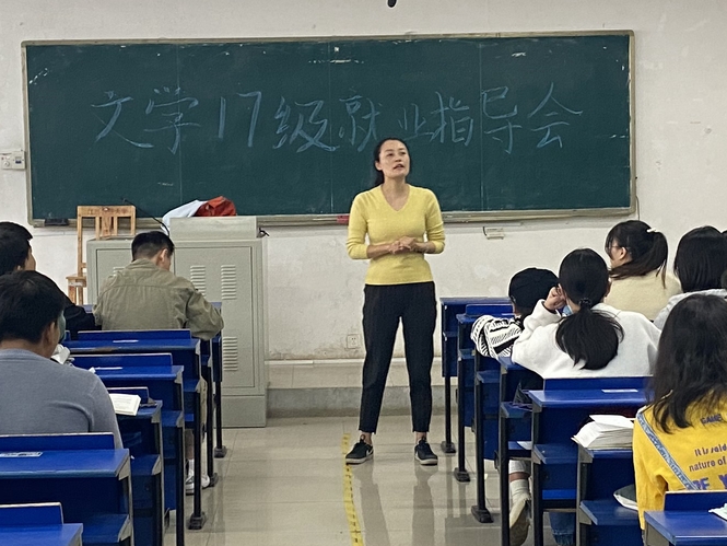 院党委副书记刘彩云来到各毕业班级,根据不同的专业特点,分别对公共事业管理、汉语言文学、法学、音乐学不同专业学生就业提出了针对性的指导意见。刘彩云指出,毕业生应当做到精准识变、科学应变、主动求变。精准识变就是要立足自身,理性分析研判,正确认识当前所面临的严峻就业形势,准确把握疫情之下的就业走势。科学应变就是要积极转变就业观念,在变局中开新局,在危机中育先机,增强自身核心竞争力,提升就业本领,把握好就业机会。主动求变就是要适时调整自身的就业策略,要根据面临的实际情况理性地选择考研学校、就业单位、考公岗位并作出适时调整。她还鼓励毕业生积极投身军营,关注“特岗教师”“大学生村官”“三支一扶”“西部计划”等基层项目。