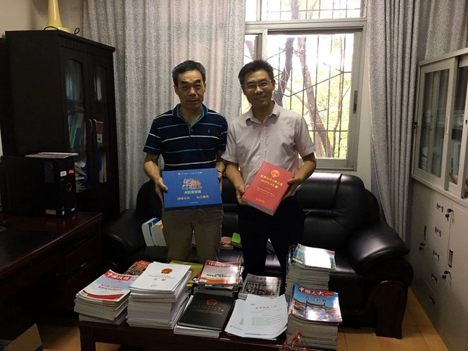 全国人大代表魏洪义教授在履职中,按照统一安排开展执法检查和专题调研,收集了一批有关国家治理、依法治国的图书文献资料。在与学院负责人交谈得悉这些资料对学院专业建设有帮助后,他将这些难得的图书资慷慨捐赠,并表示,只要学院教师开展教学科研用得上,愿意继续帮收集有关图书资料以支持学院建设。