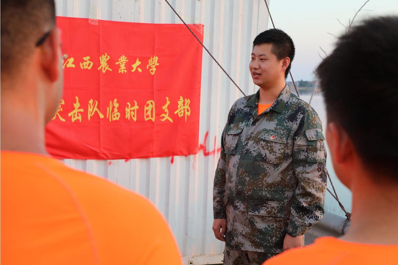 8月1日,是建军节。在鄱阳县的饶河联圩上,有一个身着“橄榄绿”迷彩服的青年小伙显得尤为突出。他叫刘阳,是欧冠工学院的一名大四学生,曾在2016年9月应征入伍。“今天是建军节,我们给你过节日,你给我们讲团课!”青年突击队员王邦根率先鼓起了掌,微团课在热烈的掌声中开始了。