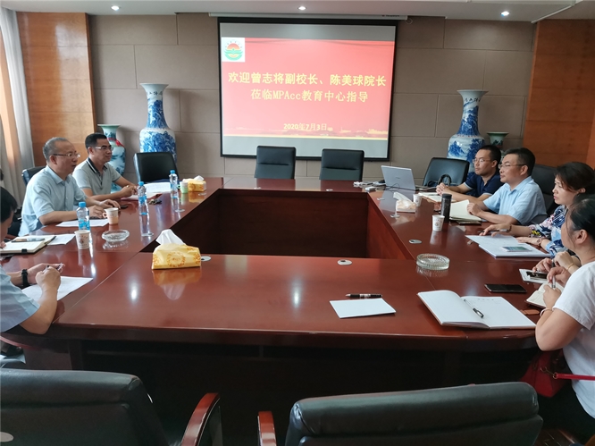 7月3日上午,副校长曾志将带领研究生院院长陈美球、研究生院专业学位办主任陈小涛一行来到经管院MPAcc教育中心指导MPAcc评估工作。经管院院长翁贞林,副院长周波、张征华,MPAcc教育中心成员及会计专业相关教师参加会议。