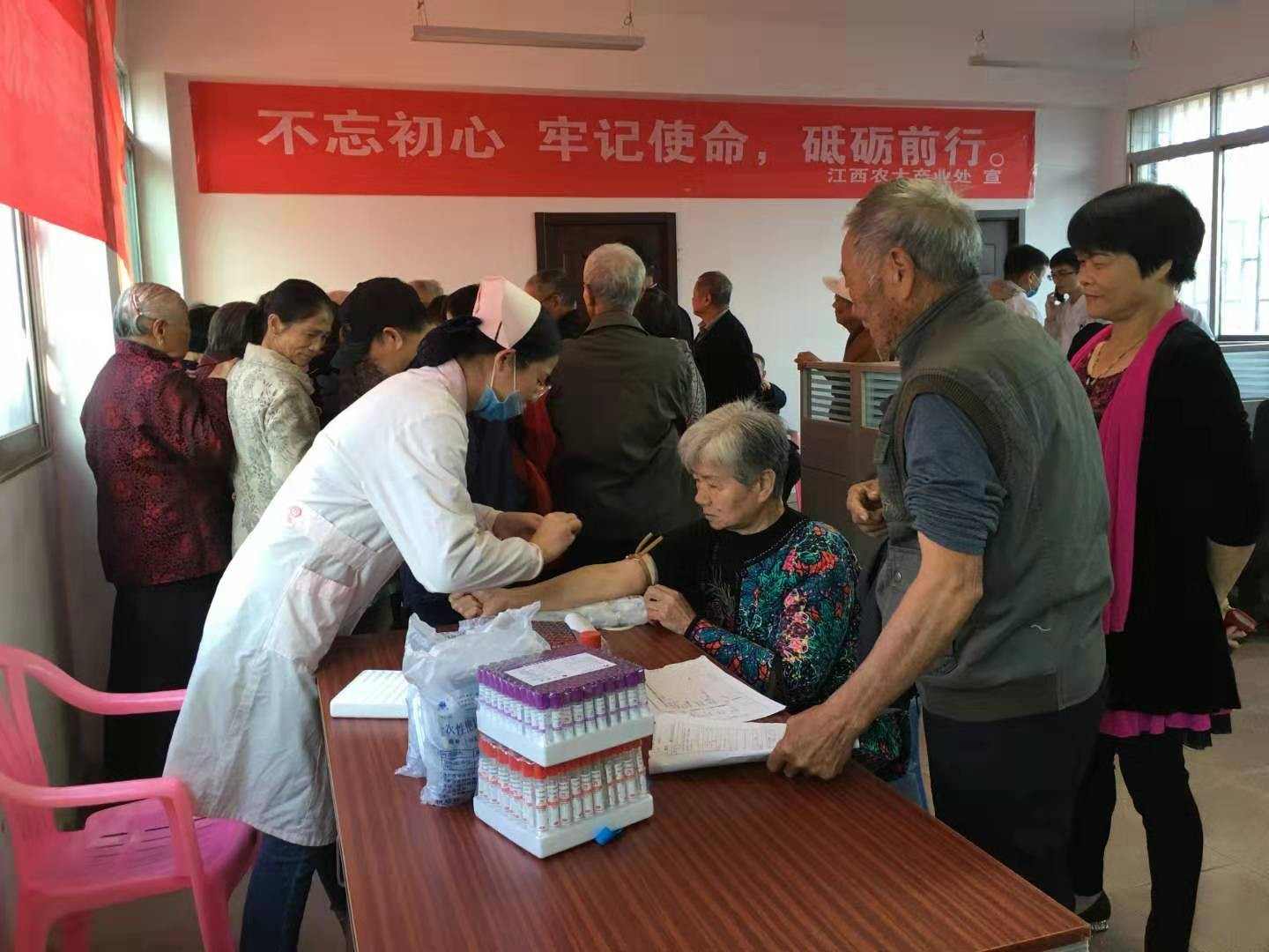 为深入推进“不忘初心、牢记使命”主题教育,进一步提高欧冠办企业退休职工的健康水平,提升他们对自身健康的认知,日前,产业处联合白水湖管理处社区卫生服务中心的医护人员开展为校办企业及科技园、种猪场等单位60周岁以上退休职工免费体检活动,500余名退休职工参加此次免费体检活动。
