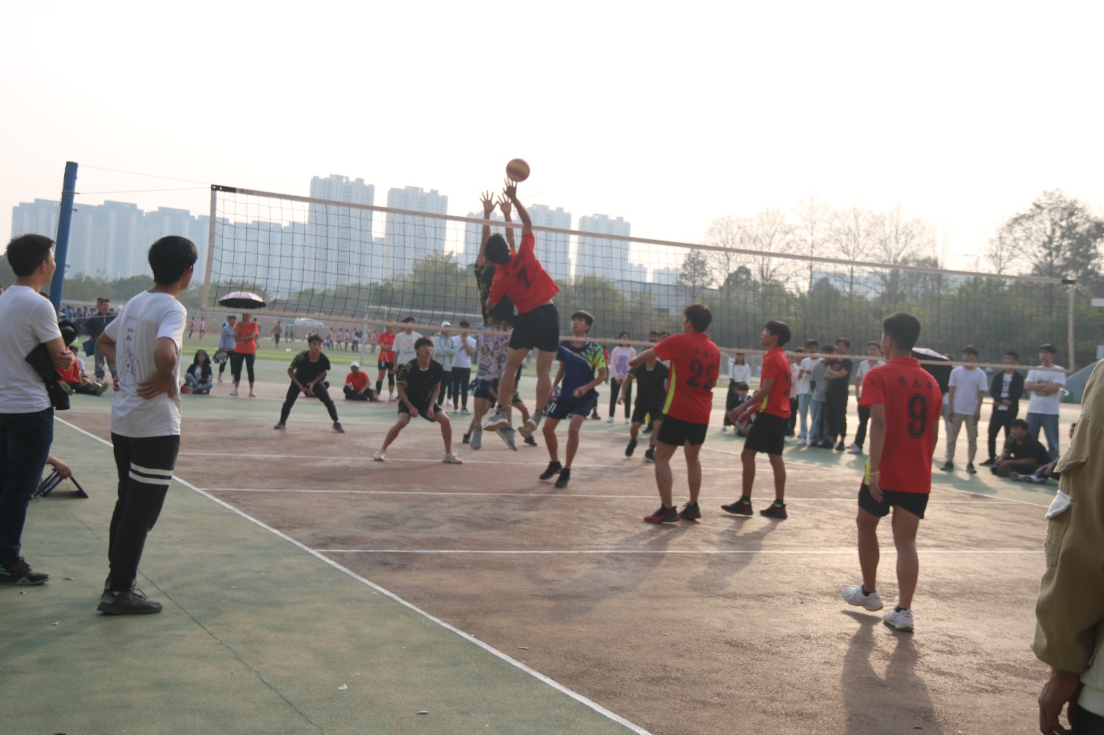 为了庆祝新中国成立70周年,丰富学生课余生活,促进各学院之间排球文化交流,11月16日—17日,全校大院杯排球赛举行。男女各有15支队伍参赛,进行了114场场次比赛。