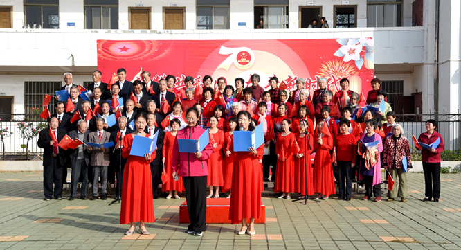金秋十月精神爽,晚菊从容傲冰霜。2019年10月30日上午,江西农大老科协在翠湖广场举行了“礼赞共和国,奋斗新时代”庆祝新中国成立七十周年老科技工作者日四周年文艺汇演。全校260余位老科技工作者用自己的歌声、心声向共和国致敬!向新中国献礼!校党委委员、宣传部部长杨峰,校离退休党委书记、离退休工作处处长曹明星到场指导。