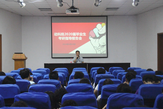 为助力2020届毕业生考研,进一步做好考研指导,9月18日,动物科学技术学院邀请招生就业处副处长陈家兴为2020届考研学生做考研指导报告会,近140名学生聆听报告。