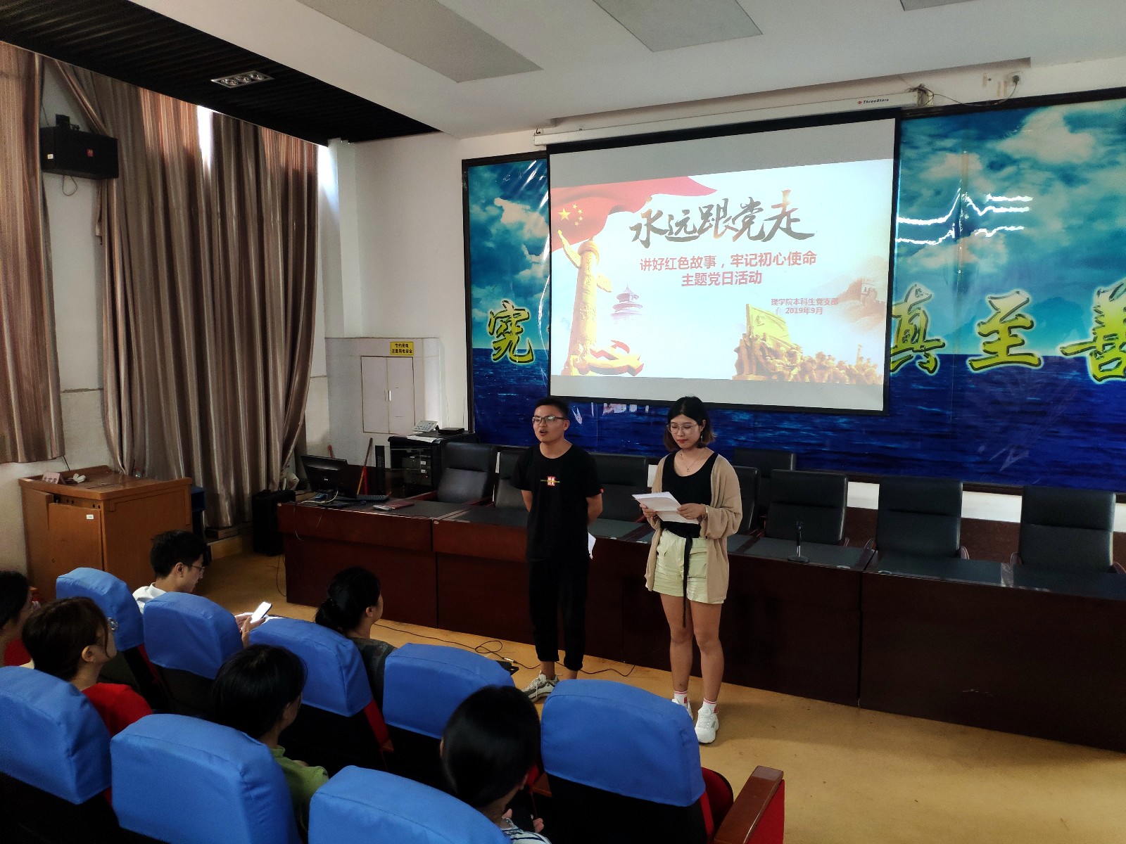 9月10日下午,理学院本科生党支部开展了 “讲好红色故事,牢记初心使命”主题党日活动。活动中,学生党员通过情景表演、朗诵、PPt演讲等多种形式再现了伟大的无产阶级革命家朱德、革命烈士刘胡兰、伍若兰等信念坚定、艰苦奋斗、不畏牺牲的红色经典事迹,并展开热烈讨论。