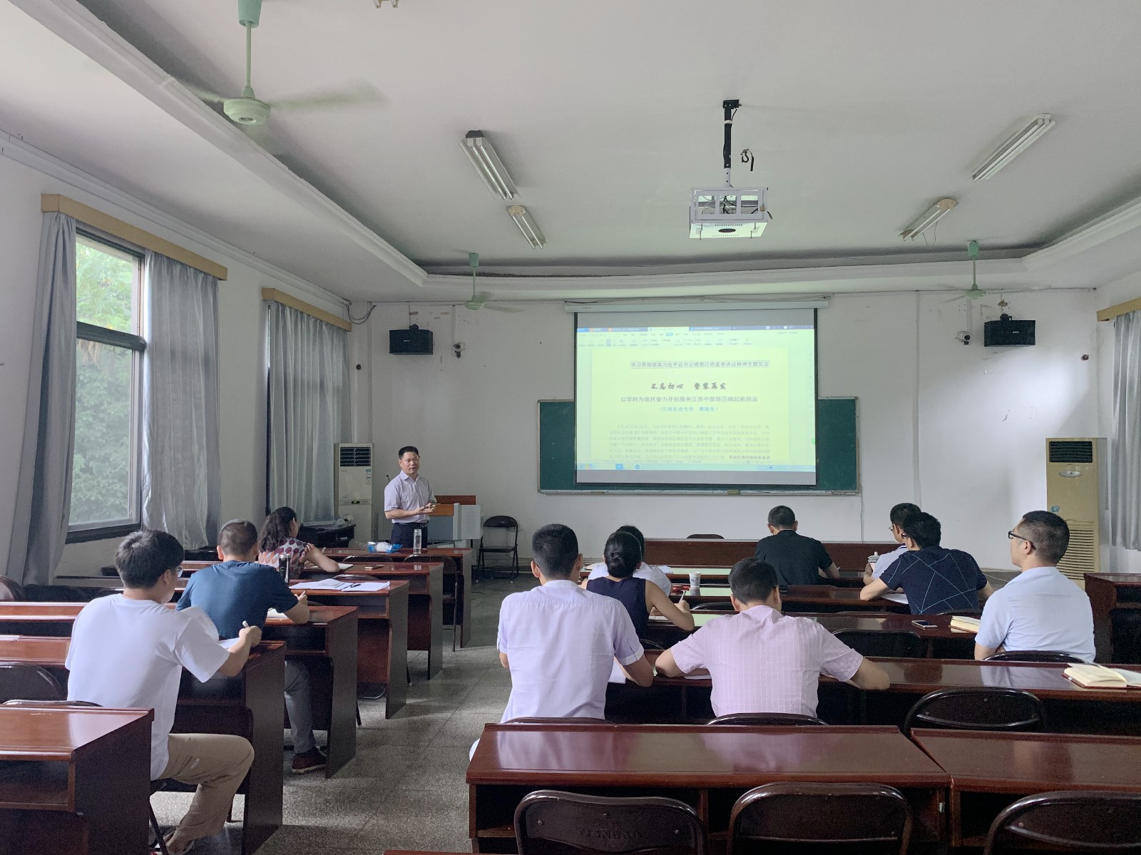 6月20日上午,为进一步学习宣传贯彻好习近平总书记在视察江西时的重要讲话精神,机关第十二党支部在研究生院三楼多媒体会议室召开主题党日学习会。