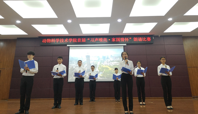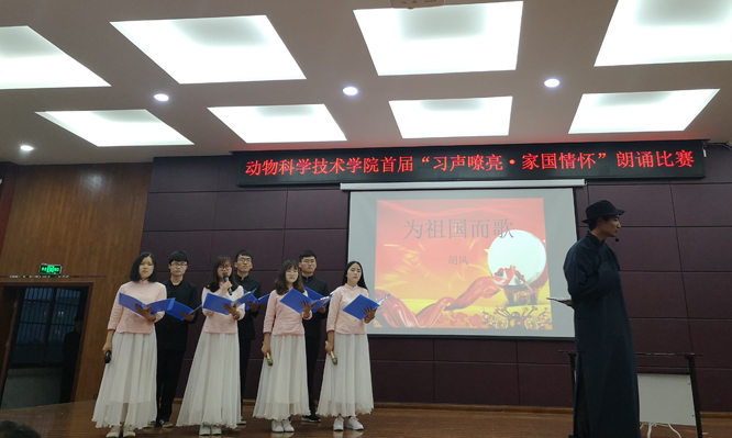 为庆祝新中国成立70周年,教育引导青年学生坚定理想信念,厚植家国情怀,4月23日晚,动物科学技术学院举办首届“习声嘹亮·家国情怀”朗诵比赛。