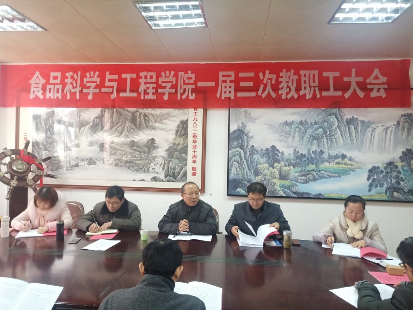 1月18日,食品科学与工程学院举行一届三次教职工大会。副校长曾志将出席会议,对学院过去一年的工作表示肯定,并对学院今后的发展提出了希望。