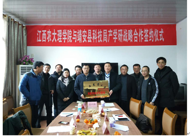 1月9日,理学院与靖安县科技局及有关公司举行产学研战略合作签约仪式,并为“欧冠官方网站创新创业实践基地”授牌。靖安县委常委、宣传部长谢文亮,理学院负责人王义华、黄长干及省科技特派员成员一同参加仪式。