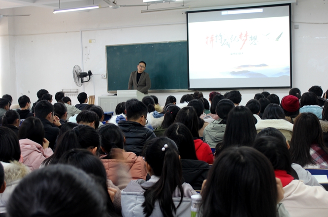 12月25日,外语学院邀请2009级校友、义乌市蓝调进出口有限公司、文军电子商务商行创始人张明军参加“企业家进课堂”活动,为全院学子作题为《拼搏成就梦想》的职业生涯规划专题讲座。