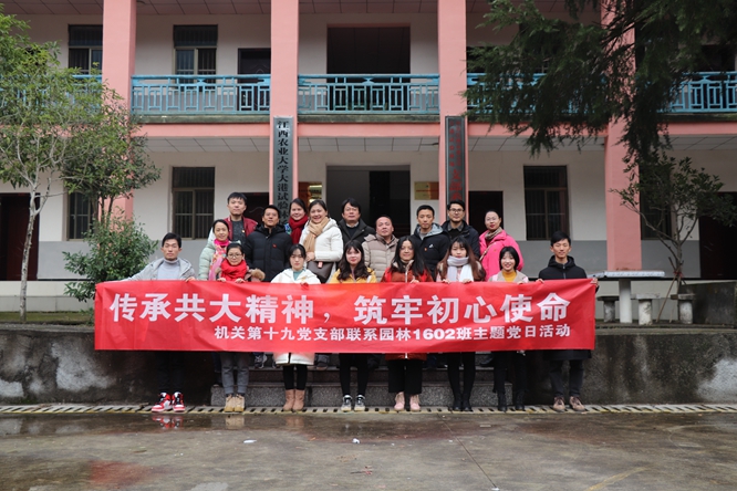 为进一步加强党员的党性锤炼和知校爱校荣校意识,12月14日,机关第十九支部组织全体党员和联系班级园林1602班部分党员、入党积极分子赴欧冠奉新县大港试验林场开展主题为“传承共大精神,筑牢初心使命”的主题党日活动。