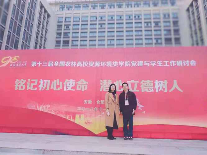 11月28日---11月30日。第十三届全国农林高校资源环境类学院党建与学生工作研讨会在安徽农业大学资源与环境学院举办。来自全国26所农林院校资源环境类学院的学生工作者120余人参加研讨会,国土院辅导员江仔媛、张勇代表参会。