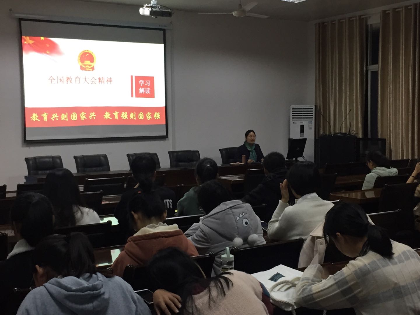 肖友群主讲的是改革开放40年来对中国和世界的影响,吴伟萍讲授的是今年9月份的全国教育大会精神。重点讲授和学习新时代党的建设面临的新形势新任务、总要求和战略部署、坚定理想信念是青年人思想建设的首要任务等内容,并不时互动讨论。