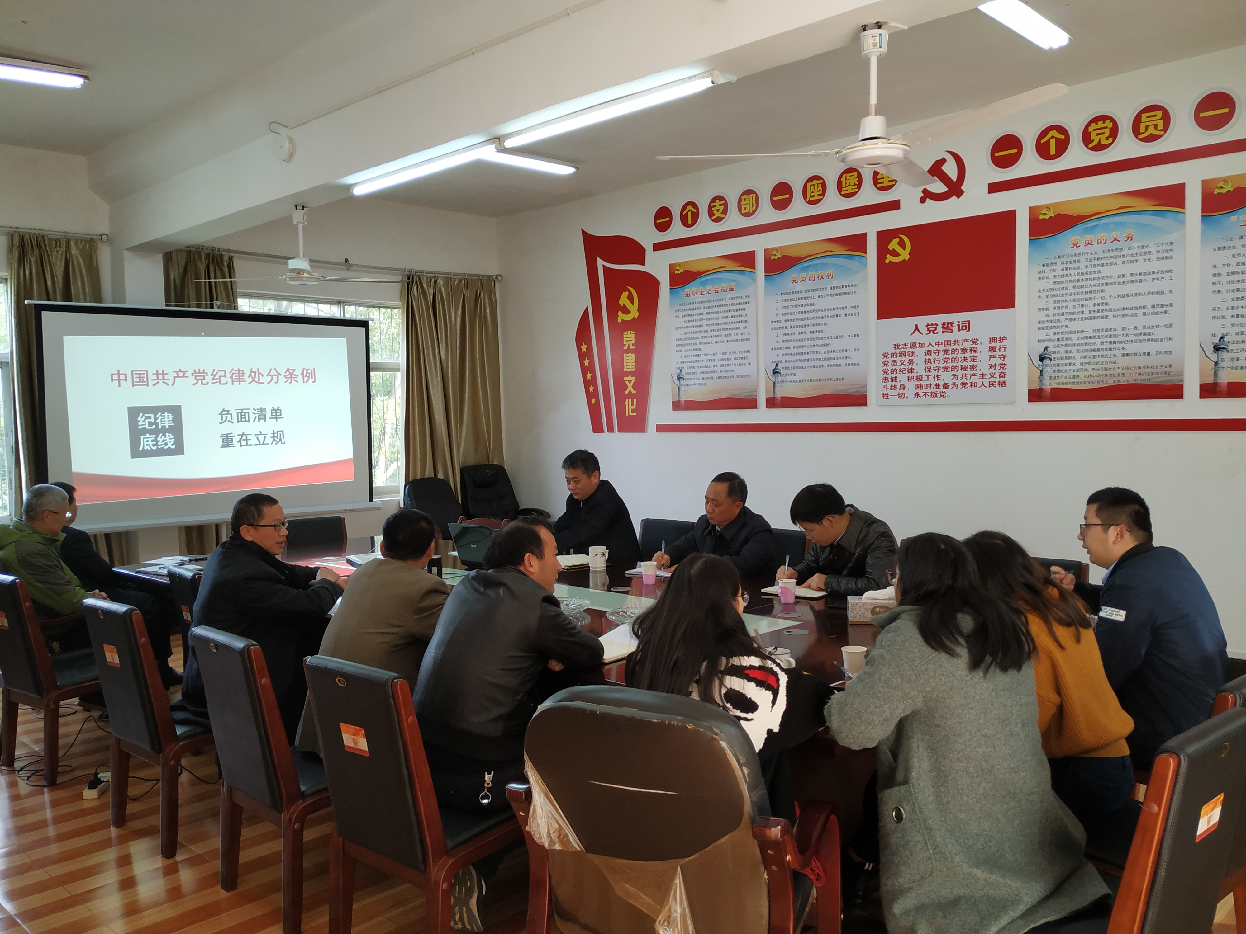 11月22日上午,机关党委第十一党支部召开支部大会组织学习新修订《中国共产党纪律处分条例》,副校长林小凡以普通党员身份参加了党课学习。支部书记万江文为全体支部党员作专题党课辅导。