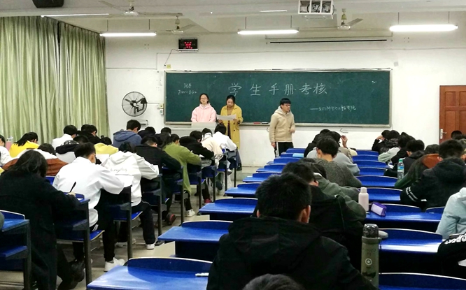该院于10月中旬开始定期组织学生干部为新生进行《学生手册》的讲解,从而使新生熟知《学生手册》内容。此次考试采取闭卷形式,内容以《学生手册》中的相关规章制度为基础,涵盖学籍管理、行为规范、请假制度、宿舍管理、安全管理、品行考核、奖惩办法等内容,全面考察新生对校规校纪的认知程度。考试期间,同学们自觉遵守考场纪律,独立思考,认真答卷,整体考风良好。