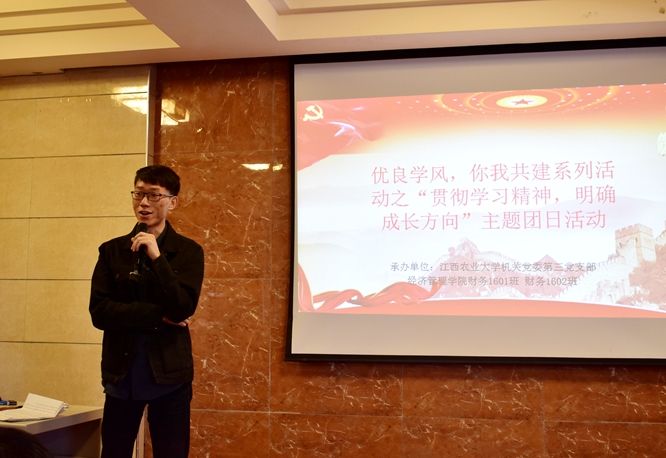 为进一步细化指导学生考研、考公务员和就业决策,10月28日,财务1601、1602班举行以“贯彻学习精神,明确成长方向”为主题的团日活动。机关第三党支部书记阮明华,支部委员叶健、皮芳辉作为单位联系班级参加活动。学院党委副书记刘庆言,教师代表以及优秀毕业生许豪声、高海俐参加活动。