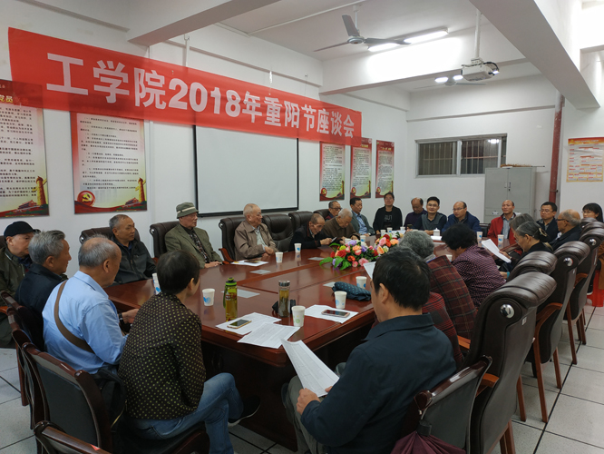 重阳节,秋意浓,暖暖围坐共话工学情。10月14日上午,工学院举办2018年重阳节座谈会。副校长兼工学院院长刘木华及所有院领导参加了座谈会。座谈会由院党委书记张高亮主持。