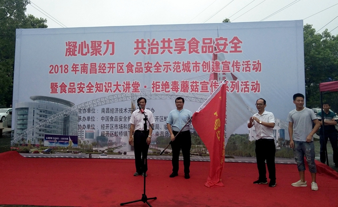 6月23日上午,人文学院的志愿者带队老师鹿光耀从南昌经开区管委会调研员龚甫手中接过江西省食品安全志愿服务总队经开分队的旗帜,队员代表宣誓成为江西省食品安全志愿服务总队经开分队的成员,成为南昌市创建国家食品安全示范城市的有生力量,这也标志着江西省食品安全志愿服务总队经开分队正式成立。