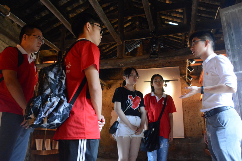 志愿者们在院团委老师的带领下,一起学习了党的“红船精神”,瞻仰了教育基地内展示的特色党员家书、村党员议事的火盆会议等遗迹,铭记党的光辉历史,弘扬党的优良传统。最后,师生们一起面对党旗,庄严的重温了入党誓词。