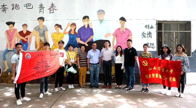 诵读活动后,支部全体党员还共同学习了习近平总书记在纪念马克思诞辰200周年大会上的重要讲话精神以及省委书记刘奇同志在全省作风建设工作会议上的讲话精神,并前往南区观看了联系班级同学创作的校园环境美化墙体彩绘作品。