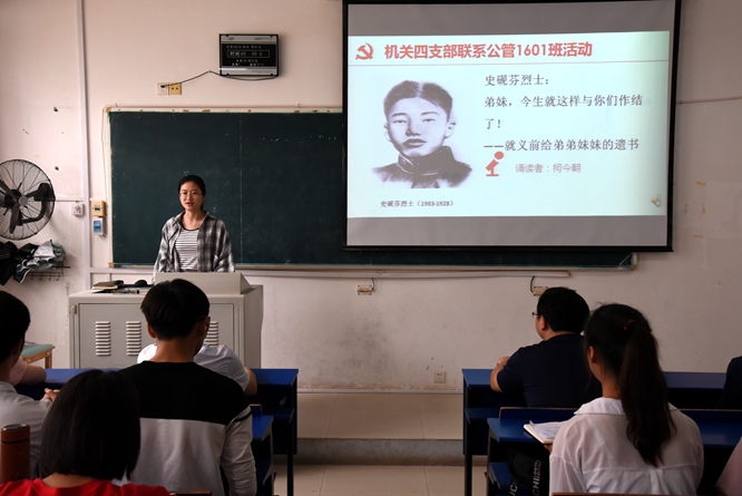 活动中,支部成员及公管1601班同学共同观看了由欧冠选送的、获得全国大学生经典美文诵读大赛三等奖的视频作品《可爱的中国》。学生代表分别诵读了王孝锡、史砚芬、赵一曼、毛泽建、皱子侃、李鸣珂等革命烈士的家书。随后,支部党员分享了自己学习、工作、成长的经历,鼓励同学们不断从红色家书中汲取精神力量,追求理想、珍惜时光、成就梦想,为新时代中国特色社会主义做出自己的贡献。同学们表示,通过学习、欣赏、诵读红色家书,感悟了革命志士们追求真理、胸怀家国、勇于担当、无私无畏的境界和情怀,激励了大家爱国励志、求真力行,勇做新时代的追梦者和圆梦人。