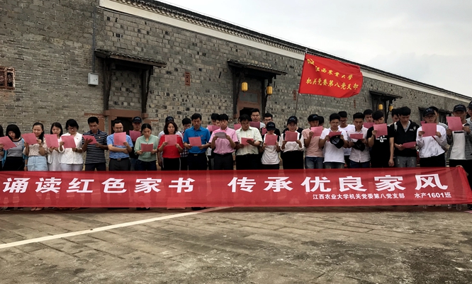 6月3日,机关第八党支部联合动科水产1601班,前往中国廉洁家风教育基地——汪山土库,开展“诵读红色家书 传承优良家风”支部联系班级主题党日活动。