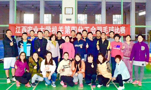 为不断丰富分工会成员的业余生活,3月10日下午3点,机关第四分工会组织本分会全体职工进行了羽毛球比赛。比赛分为单打和双打两个阶段,所有选手由抽签决定分组和比赛顺序,在单打比赛中未获奖的选手参加双打比赛,最终孙锋、朱美英、曾红权、张频老师分别获得男单、女单和双打冠军。