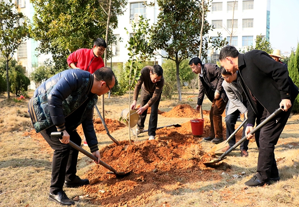 阳春三月,新绿绽放,正是植树添绿的大好时节。3月12日下午,人文学院全体领导和部分行政人员来到博学楼下开展义务植树活动。