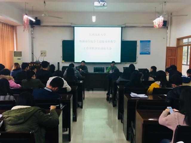 为迎接教育部本科教学工作审核评估,11月28日下午,外国语学院召开了迎接本科教学工作审核评估学生动员大会,号召全体学生加强对审核评估知识学习,提高认识。学院领导、学工办、班主任以及学生干部参加了会议。