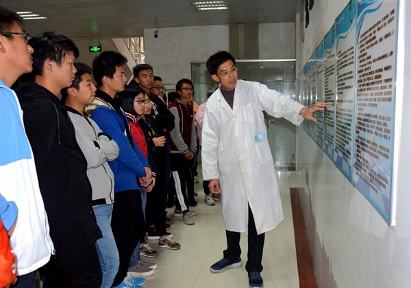化学实验室刘光斌老师还组织新生集体学习了化学实验安全操作规程。
