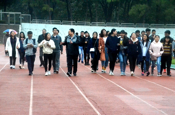 10月15日,为迎接党的十九大胜利召开,推进机关支部联系班级工作,机关第十二党支部党员与联系班级动医1603班同学在学校北区田径场举行了“喜迎十九大,师生健步行”主题党日活动。