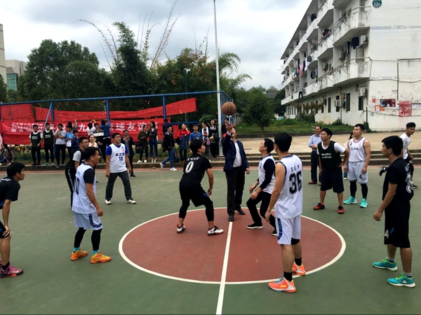 10月19日中午12时,在十九大如火如荼的召开之际,招生就业处机关第十九党支部全体党员、学生就业与职业发展协会会员和园林1602班学生在北区篮球场举行了一场篮球友谊赛。招就处处长左辉群在赛前作动员讲话,鼓励大家要响应习近平总书记的号召,加强体育锻炼,锻造健康文明的生活方式。随后左辉群为篮球赛开球,由招就处机关第十九党支部的党员老师队对阵协会与园林1602班混合队,双方在球场上你争我抢,充分展现了当代青年老师的活力、当代大学生的激情。