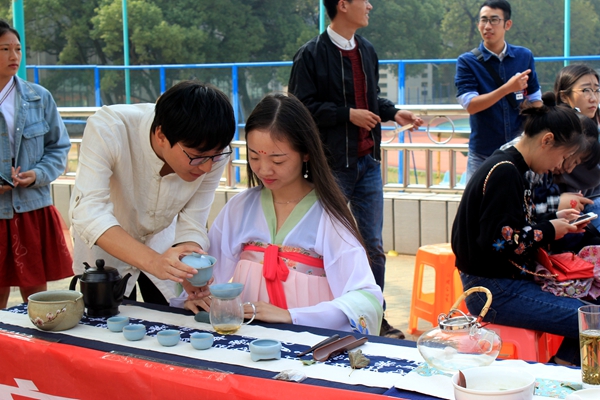 活动以提升大学生民族文化自觉、增强大学生民族文化自信为主旨,设置了“现学中国结和剪纸”、“体验汉服拍美照”、“书法和茶艺展示”、“答题赢奖品”等一系列环节,以多种形式将我国传统文化精粹与传统文化知识融入到各种趣味活动当中,充分展示了中华传统文化的亲和力、吸引力和感染力。
