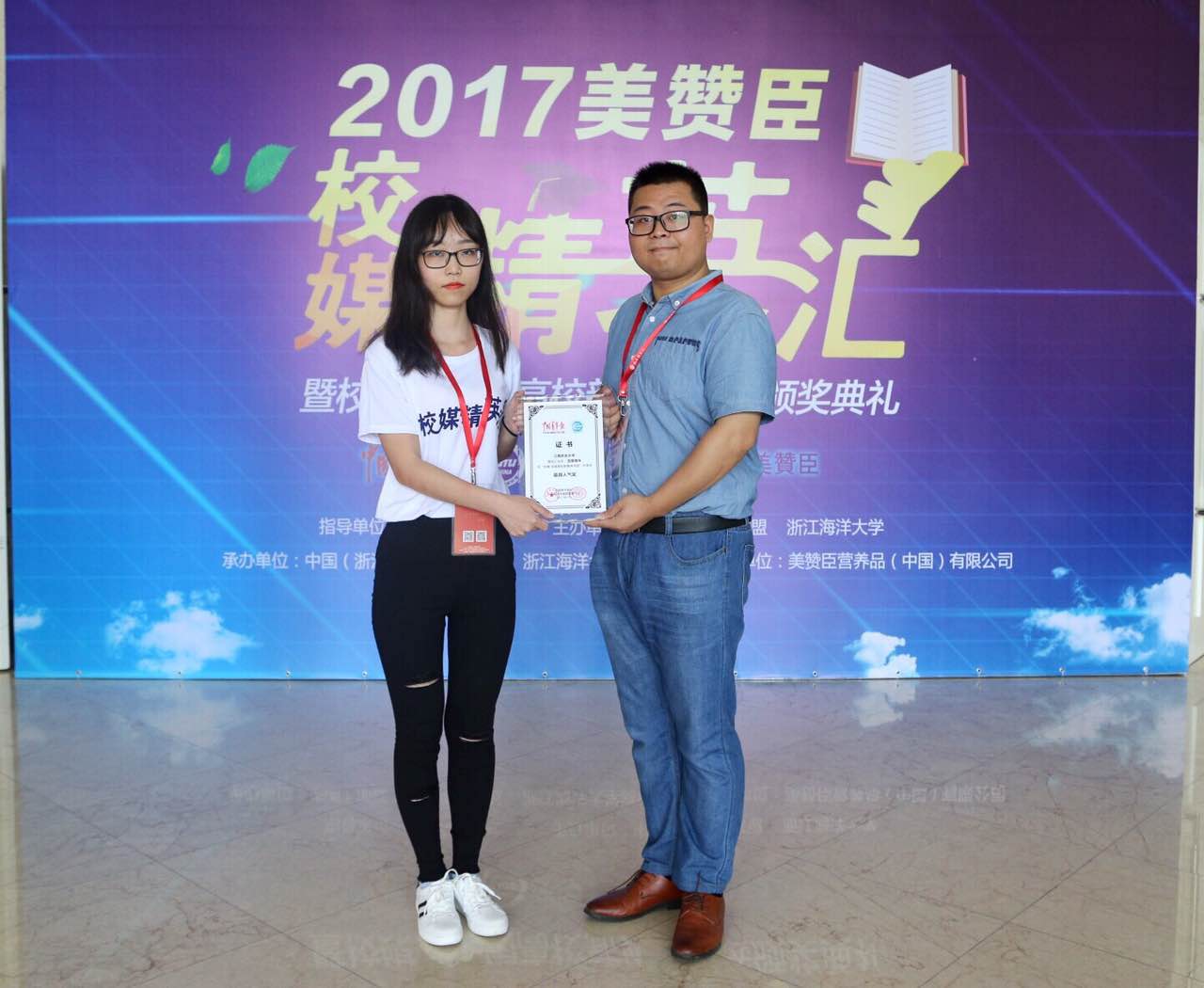 7月24日,欧冠大学生新媒体中心远赴浙江舟山浙江海洋大学参与全国高校新媒体评选颁奖典礼。中华全国新闻工作者协会书记处书记王冬梅,浙江海洋大学党委副书记虞聪正,中国高校传媒联盟秘书长董时和美赞臣营养品公司大中华区副总裁顾磊出席颁奖礼并致辞。欧冠大学生新媒体中心团队荣获最具人气奖。