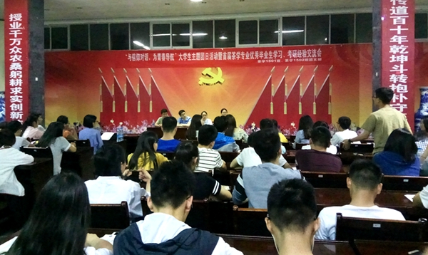 5月9日晚,由农学院茶学1501班、茶学1502班团支部承办的“与信仰对话,为青春导航”大学生主题团日活动暨首届茶学专业学习考研经验交流会在拾禄楼二楼报告厅举行,茶学专业老师、部分录取研究生的2017届茶学专业优秀毕业生,以及2015级茶学专业本科生参加活动。