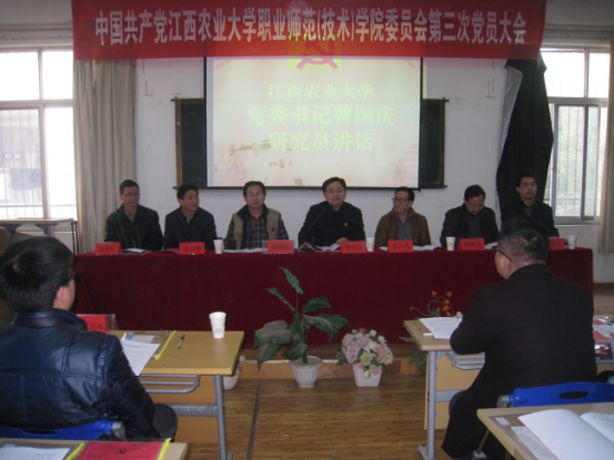 12月20日,职业师范(技术)学院第三次党员大会举行,校党委书记曹国庆,校机关党委常务副书记彭小波出席大会。