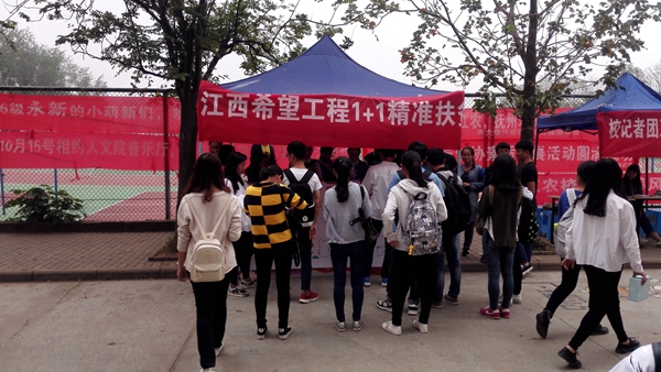 10月17日,是全国第三个扶贫日,也是第24个国际消除贫困日。当天欧冠志愿者、爱心社在南区公寓开展了“助学一人,扶贫一家——江西希望工程1+1精准扶贫助学行动”活动,募集爱心捐款,汇聚师生爱心,截止目前,共募集捐款7600元。