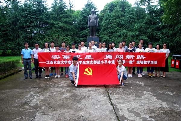 7月6日上午,农学院学生党支部组织学生党员赴小平小道爱国主义教育基地,实地开展“两学一做”现场教学活动,缅怀伟人丰功伟绩、接受党性党风锻炼。