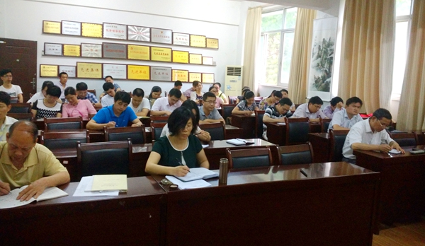 6月7日下午,农学院教工党支部在拾禄楼四楼会议室召开“坚定执着追理想”专题学习会,院党委书记廖明祥为全院教工党员上党课,院党委副书记肖意风主持专题学习会。