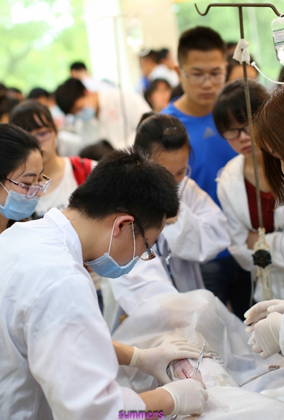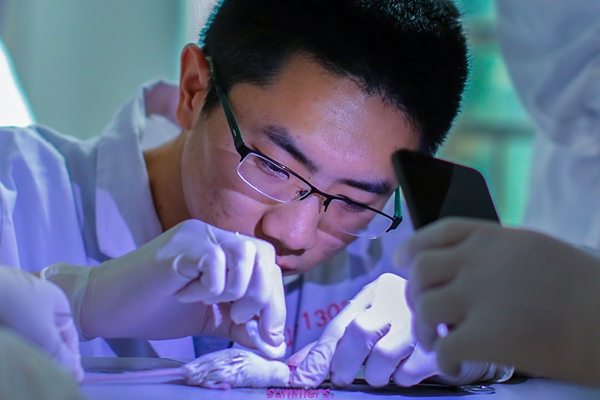 此次比赛共有210名同学报名参赛,经过初赛理论考试的选拔,有25组共112人突出重围进入决赛。根据年级专业的区分,参赛选手进行了犬的胃切开与探查、去一侧小脑动物观察和家兔的解剖等实验项目的比拼。最终,专业一组动医1301班钟秋萍等人,专业二组动科1302班赵梓月等人,非专业组动医1401班顾俊等人荣获一等奖。