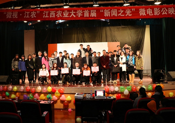 12月10日晚,人文与公共管理学院在学院音乐厅举办首届“新闻之光”微电影公映活动。由人文与公共管理学院新闻1301班的同学们在专业老师的指导下自编、自导、自演完成的6部微电影作品公映。
