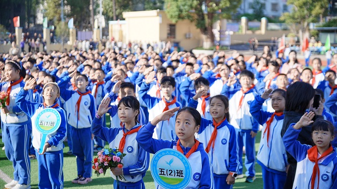 10月24日上午,随着激昂的运动员进行曲响彻校园,附属中学全体师生齐聚运动场,在庄严的升旗仪式中拉开序幕。全校师生面向鲜艳的五星红旗,高唱国歌,表达对祖国的无限热爱与崇高敬意。