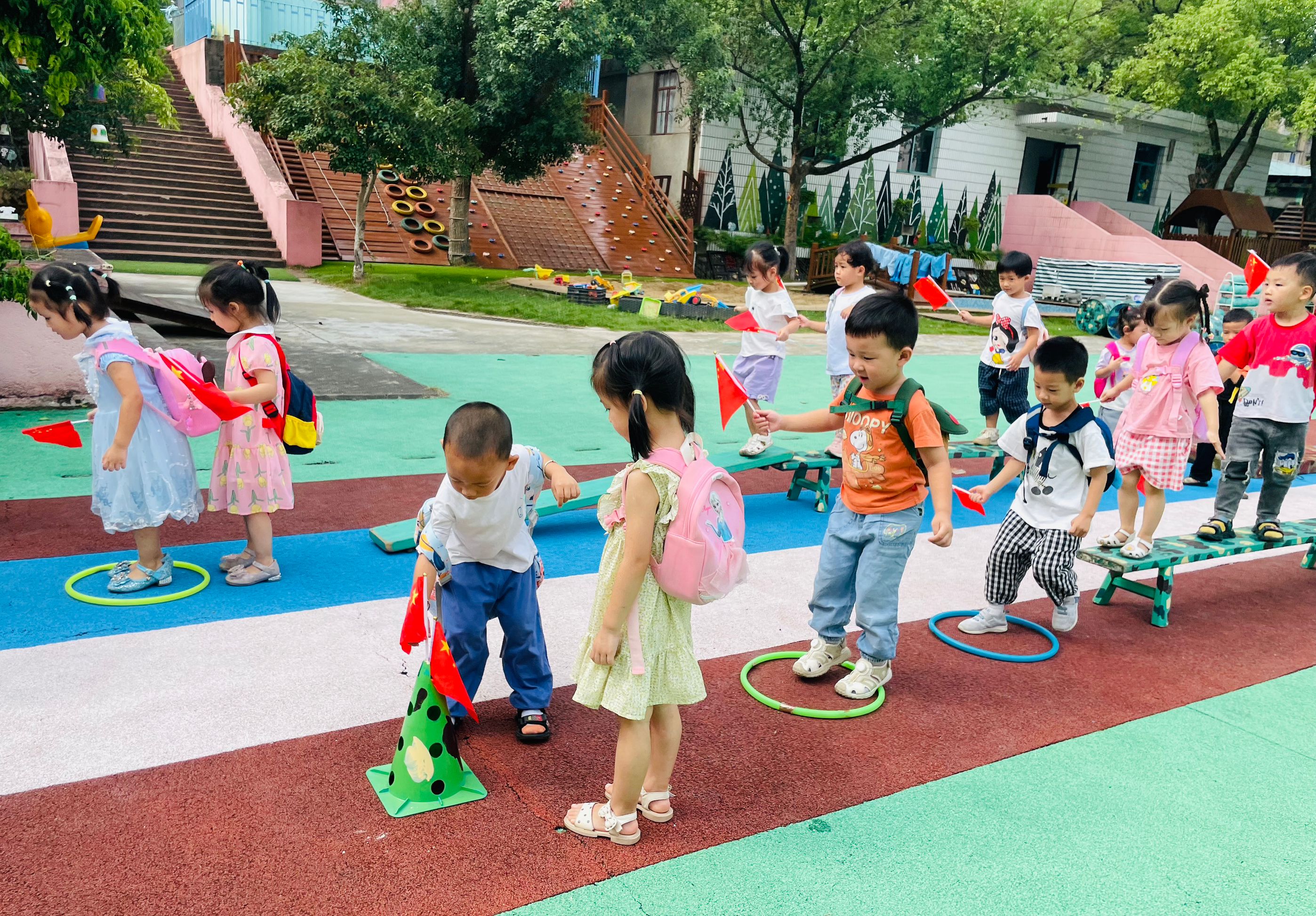 组织“与国旗同框向祖国告白”活动,国庆节与国旗合影不仅有仪式感,也培养了孩子们的爱国情怀。一张张笑脸、一颗颗爱国心、一幕幕正能量都汇聚成浓浓的爱国情义。各年级将红色故事、革命事迹融入游戏中,让孩子们在享受运动乐趣的同时,感受革命先辈们不怕困难、勇于拼搏的精神。