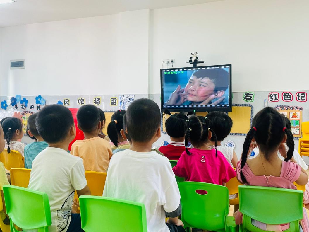 教师精心挑选红色经典影片,并向幼儿简单介绍故事情节。在观看过程中,孩子们被生动感人的故事情节所打动,他们时而鼓掌、时而紧张,目不转睛的盯着荧幕,全身心投入在影片中……通过红色观影活动,拉近了孩子们与革命年代的距离,让他们更加懂得了幸福生活的来之不易。