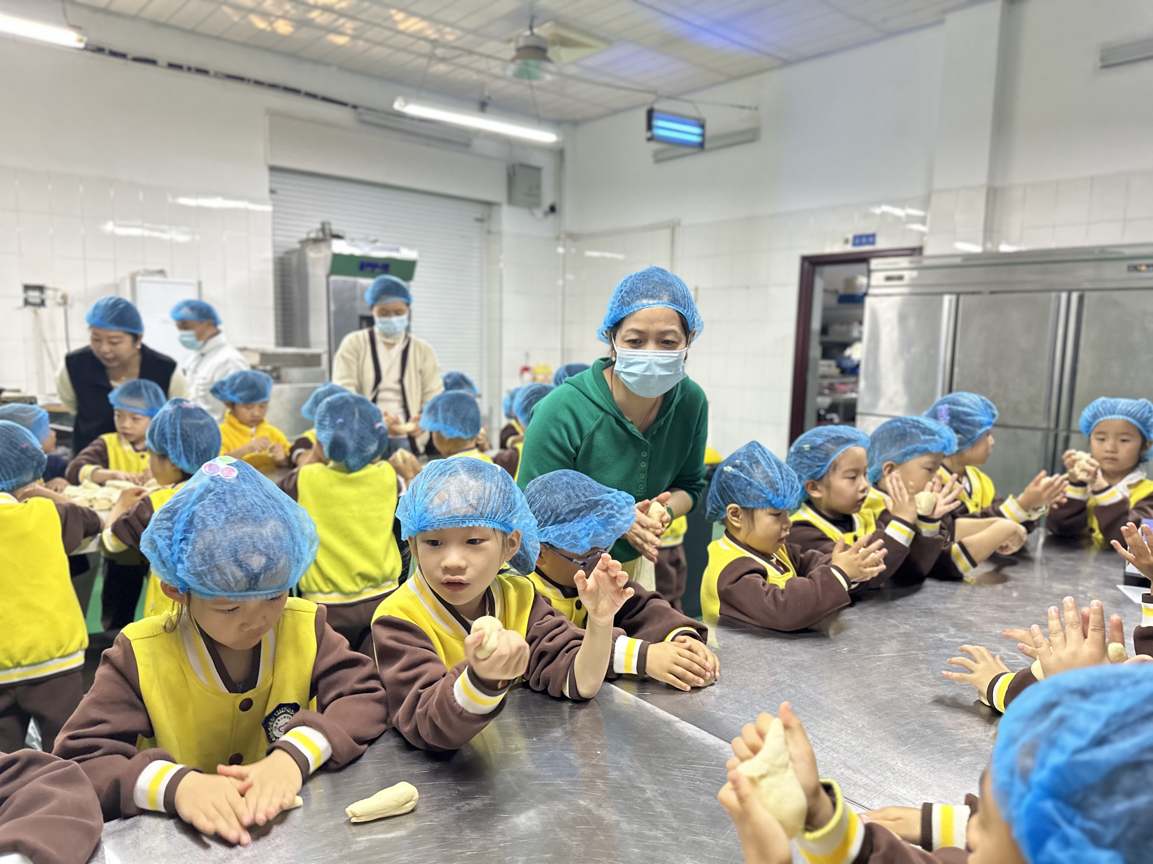 为开拓幼儿视野,探究食品制作的奥秘,体验不同社会职业,11月6日,保育院开展大班幼儿参观食品科学与工程学院实训基地暨探秘美食工厂社会实践活动。